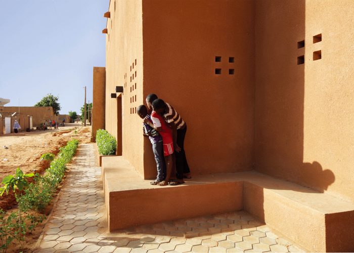 Like its early predecessors, Niamey 2000 provides privacy for its inhabitants; however, the project strives to address more than the need for culturally appropriate housing. It takes a firm position on material selection by using unfired, earth masonry and passive cooling techniques to protect against Niger’s scorching temperatures. As is the case in many parts of the world, local materials have been increasingly abandoned in urban centers in favor of concrete. The contemporary design of Niamey 2000 reintroduces locally derived resources to the construction industry and offers affordable homes to a broader range of the city’s growing population.