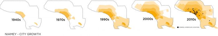 Niamey 2000 takes its inspiration from pre-colonial cities of the region, such as Timbuktu in Mali, Kano in Nigeria, or Zinder in Niger, which were all dense urban centers in their day. The cities’ organic configurations of intricately intertwined homes were often two or three stories in height, while still maintaining a sense of privacy and intimacy.