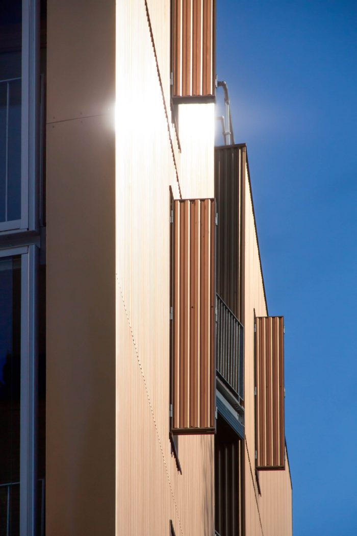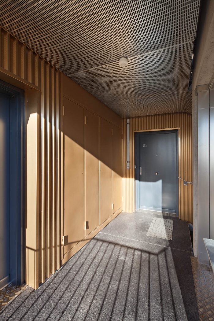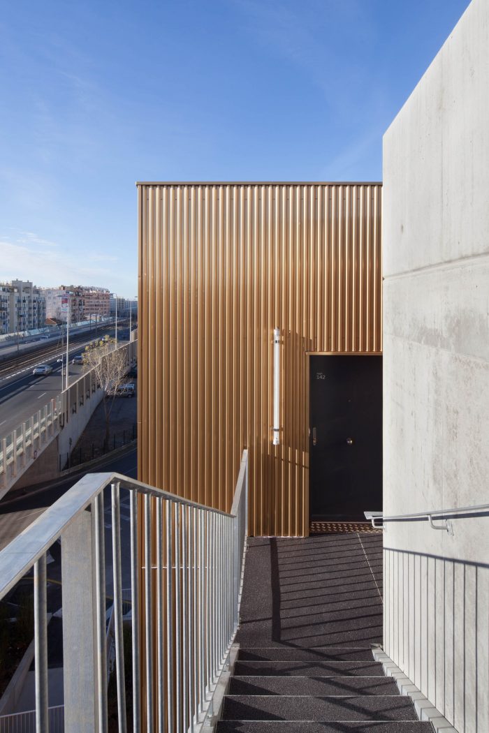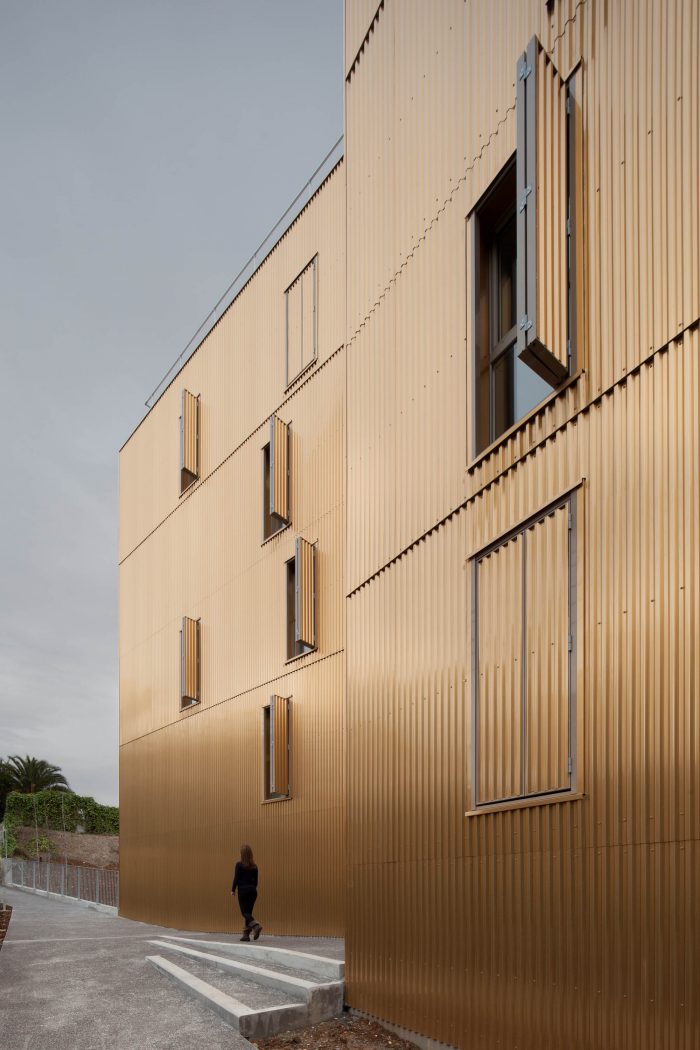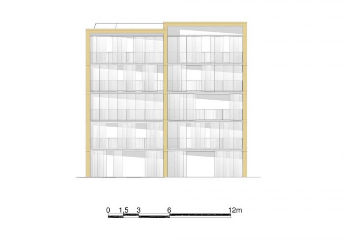 在一个狭小的地块上(1190平方米),有一个非常有限的几何形状,以及由于汽车和火车基础设施造成的强烈的噪音污染,13个住房单元和地下室停车场的建设是由三个四层的集体住宅楼组成,建在一个共同的地下。该项目旨在将场地周围不同尺度的建筑联系起来。