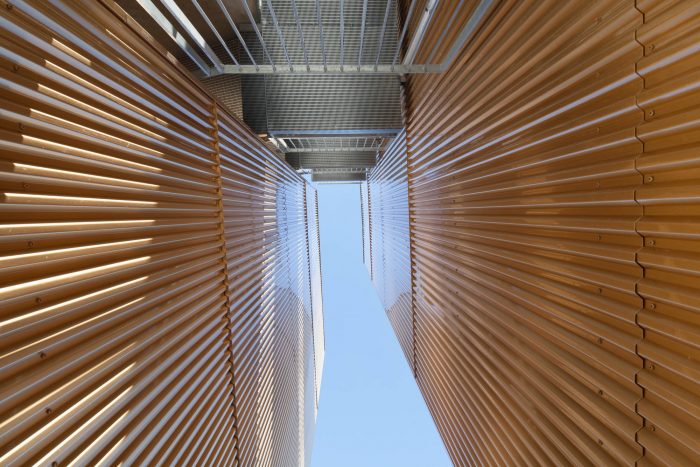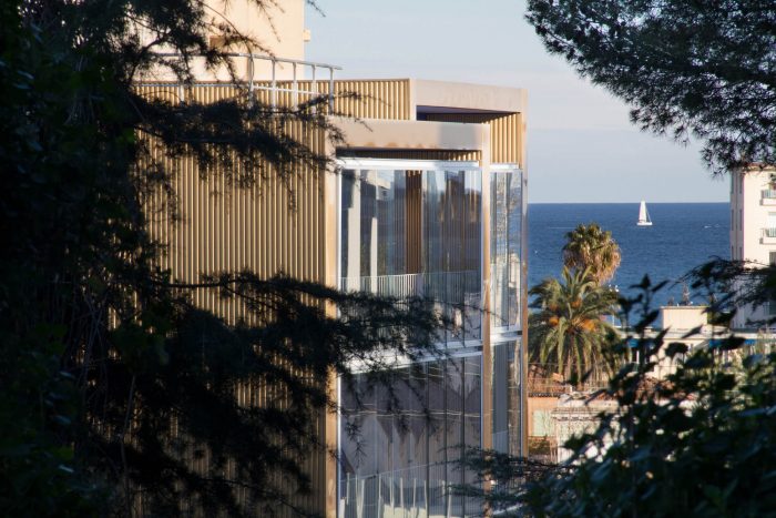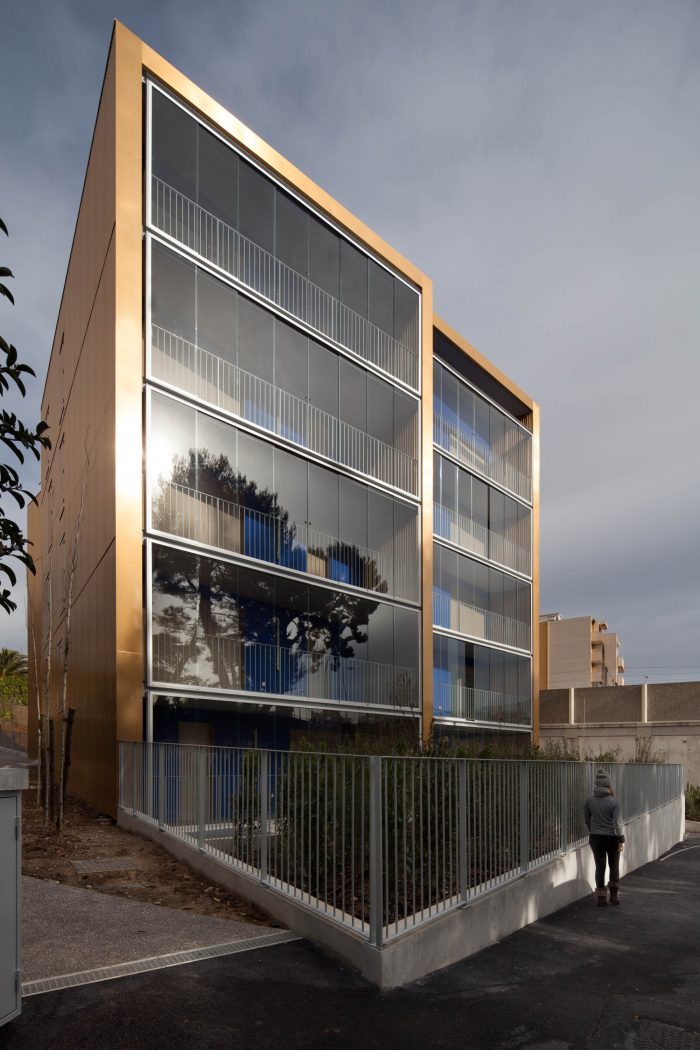 Because of noise and pollution nuisances of infrastructures, the project proposes facades of low-permeability on the north and south sides and opened largely onto the viewpoints on the east and west sides through winter gardens.