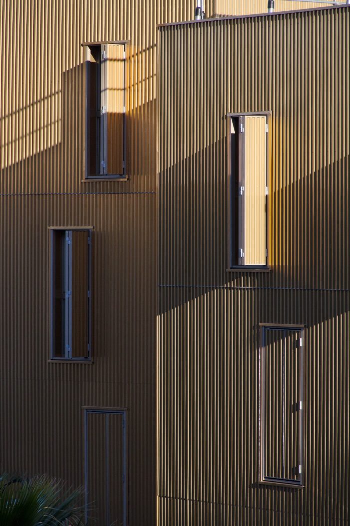 在俯视图上,每栋建筑的路权与场地上游的个人住房相似,而在立面视图上,体量的高度和城市形态则参考了主要位于马蒂斯城市公路南侧的建筑。