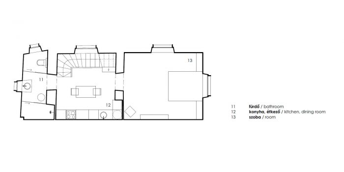 The architect describes the process as uplifting and special. „We knew that the worth of the building is hiding behind the layers of plaster. Together with Attila Hideg we kept updating and re-evaluating our thoughts along the phases of the design and construction to get the best result. It is almost impossible to compare this method with the evolution of the design of a newbuilt house. A tricky and interesting field for us to test how we behave outside our architectural comfort zone.”