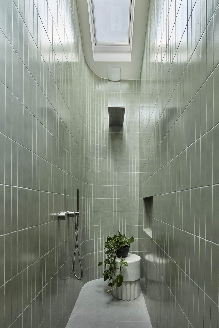 The children have been central to the design with upstairs bedrooms directly connected to the roof deck including a cubby house in the existing Victorian terrace roof space and a vertical garden for planting whilst the city skyline and neighbouring rooftops frame the children’s activities. As architects we wanted the occupants of the home to feel connected to their community, to feel the pleasure of living in a small site by viewing the vastness of its location. The upstairs bathroom with its high ceilings and views of the city, allows the three youngest children to share the shower in joyful play. Fixed bunk beds and nooks in walls allow the children bedrooms to facilitate various activities. From the kitchen downstairs the roof deck is visible through the courtyard up the stairs, ensuring all occupants are connected to each other in the home. The staircase is visible from the living areas and acts as a play area for the children with a three-step stoop located between the courtyard and living room.