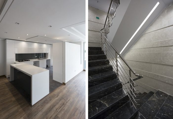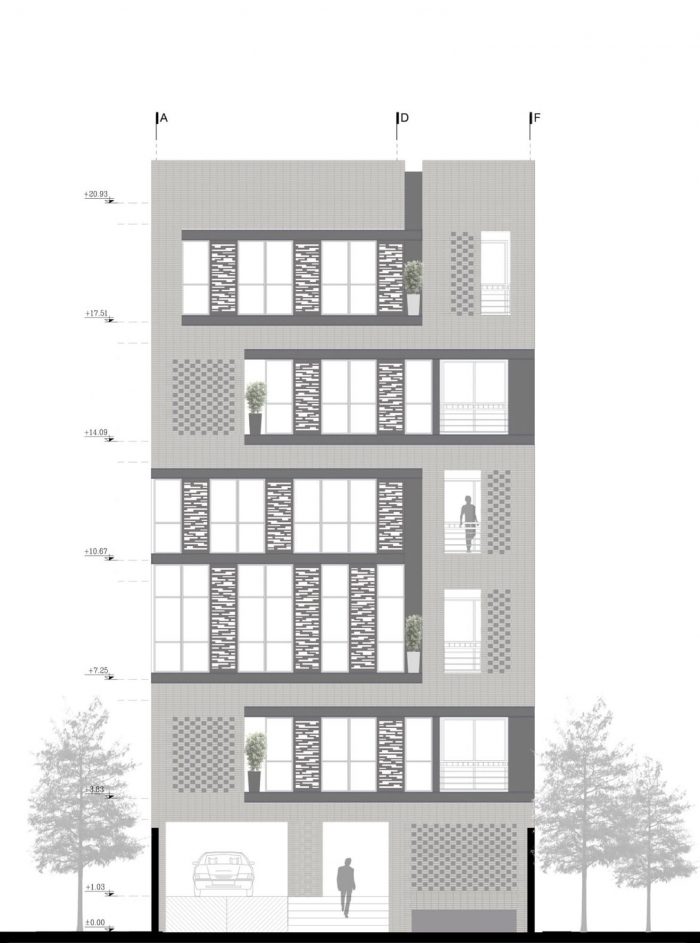 Finally, we paid attention to the ramps existing in the courtyard to access the ground and underground floors as parking lots and, as there was no sufficient green space, we tried to increase the per capita green space. Therefore, we decided to distribute flower boxes on floors not only to provide the least green space but also to create a relatively nice space in accordance with the urban texture. Therefore, we tried to bring back some part of the external finishing in order to create a place for a small tree to provide the apartments with green spaces. This contributed to create a nicer view for passers-by, on one hand, and to provide the inhabitants with the green space created in their own homes.