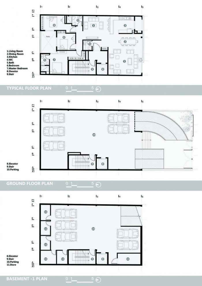 当雇主在2015年5月开始与建筑小组讨论该项目时,他打算设计一栋建筑,细节如下:一栋七层的钢结构建筑,包括地下一层的停车场、储藏室、锅炉房;底层分配给停车场;以及其他五层,每层有一个面积为165平方米的公寓,有三个卧室,总建筑面积为1365平方米,外部景观符合必要标准,以提高生活空间的质量,分配有限的预算,加快项目进度,尽快出售公寓。