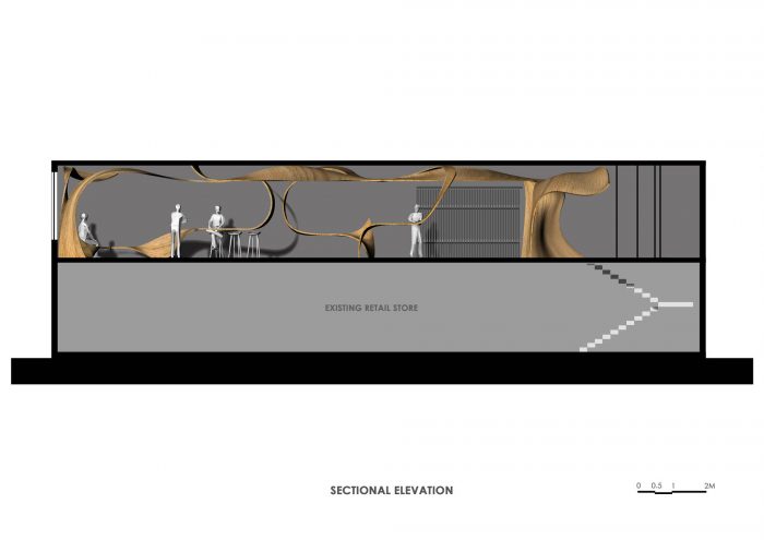The shop becomes a setting befitting for a dialogue between the carpenter, the end-user and the retailer deepening social engagement. As plywood-carpentry meets its entropic spiral, SHOP NO. 851 hopes to create an opportunity to re-imagine craft of the traditional curves, as an inexhaustible source of inspiration for the next generation of torchbearers of intricate carvings. The final note for the installation is an uncertain noise whispered in ears subconsciously picked up by the soul, but almost always leaves the mind unaware.