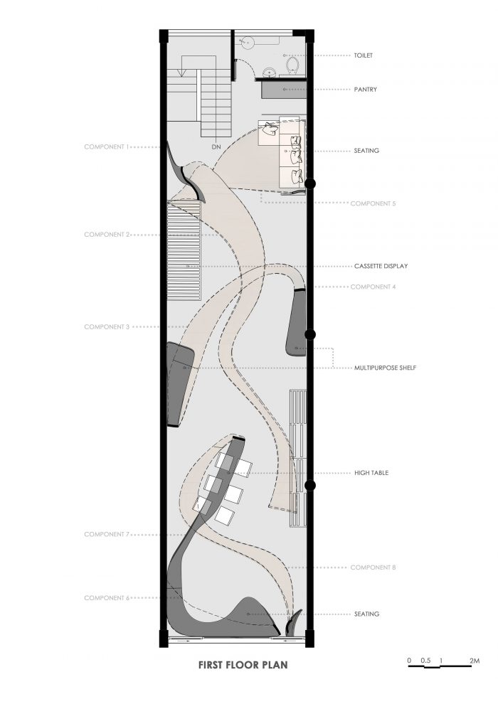 设计问题是在现代城市昌迪加尔的一个市场综合体中的一个现有的71'x18'的线性街区提出的。851号商店成为店主/客户出售的材料的声音。851号店成为店主/客户出售的材料的声音--他经营单板和胶合板,并讲述了工匠和木材之间的传统关系。其结果是一个瞬间充满诗意的室内装置:一个 "空间矩阵",有令人回味的木材带在空间内扭曲和转动,几乎像它有自己的思想。