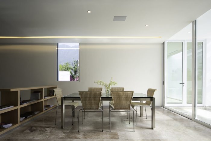 Each space is joined with the exterior through particular gardens where colors and textures match with furniture in steel, rattan and wood, also designed by bgp. The entrance to the house is through the middle level, where living, dining room and kitchen are located besides a home theater that, by opening and closing doors, could be an independent extra room for the house.