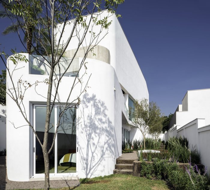 Paceful and monumental, the Nogal (Walnut) House adopts its name from the conditions defining its location in the site: it respects the existing surroundings by scattering patios around the walnut trees in the plot while the house adapts its contour to them.