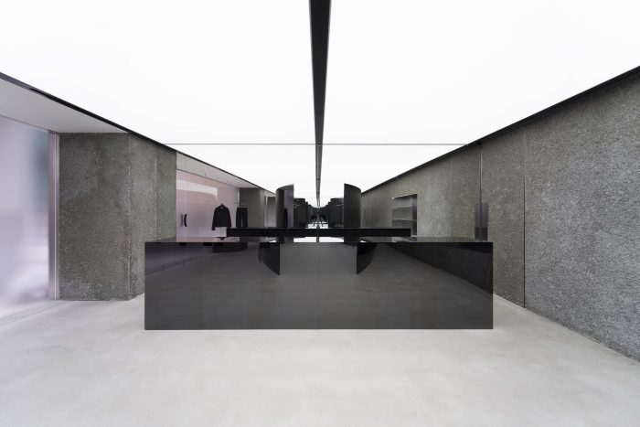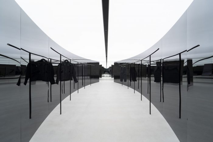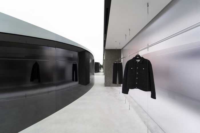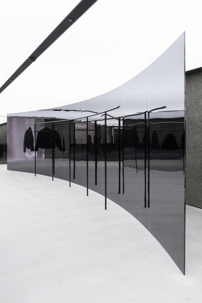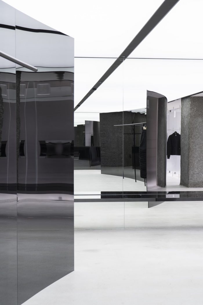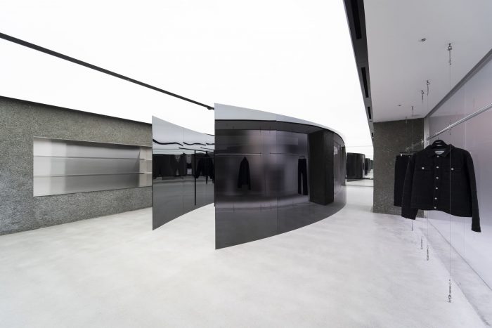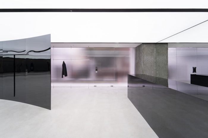 The short sides on both sides are finished with mirrors, but in addition to the functional role essential for the characteristics of the fashion store, the illusion is that the four walls expand into rectangles indefinitely.