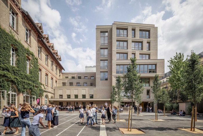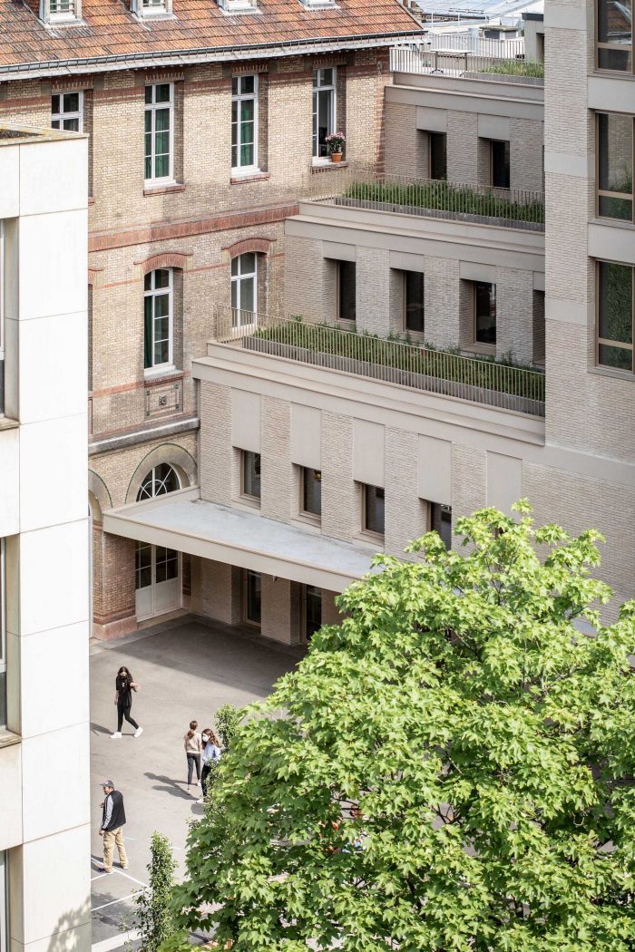 学校在施工期间保持开放,这需要在这个非常密集的地点进行精确的规划。该机构被植入一个从布洛涅森林(Bois de Boulogne)通往塞纳河的大型城市景观中,尽管街道是在1862年创建的。新的建筑正在成为现有建筑正面的一部分。