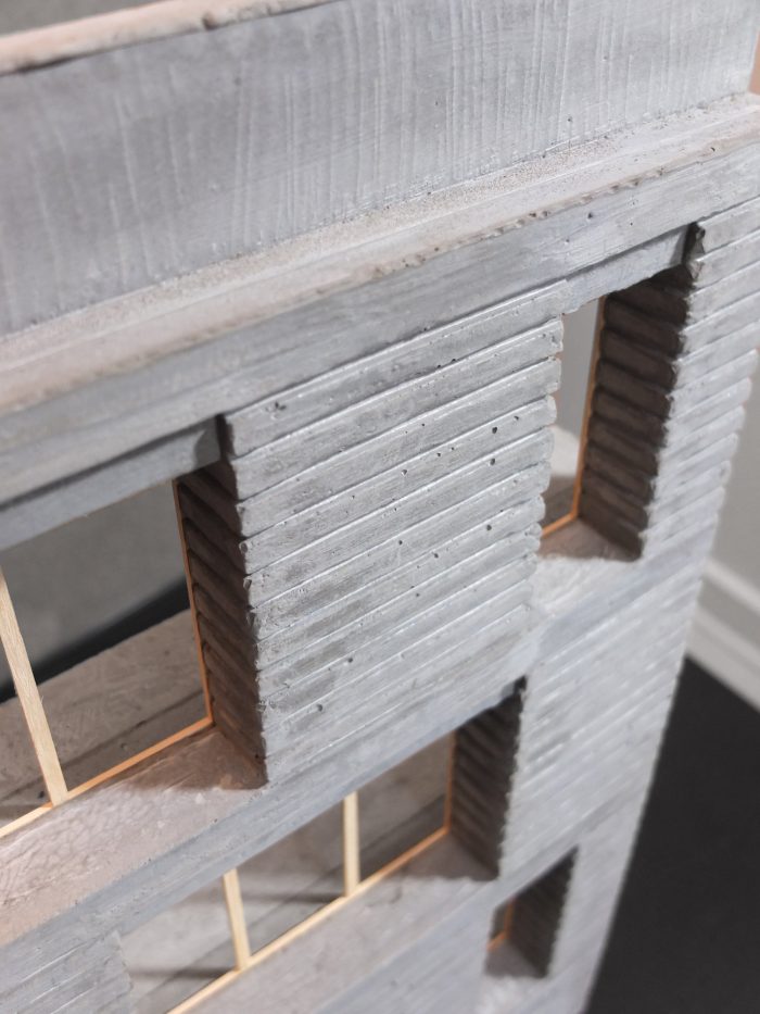 该建筑表达了一种特殊的砖石结构,在体量和托架的工作中以一种现代的方式被重新诠释。它的材料,以砖、混凝土和玻璃为主,在建筑和米歇尔-安格街中找到了亲缘关系。实体部分由金黄色的手工砖包覆,让人联想到巴黎的石头颜色。建筑层由彩色混凝土线标记。窗台有相同材料的门楣。