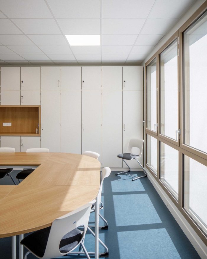 The architecture is defined by its simplicity and sobriety, to look for an inscription in a long period of time that characterize both the city and the Institution, and its values. The ambition of the program, the prominence of the existing constructions, and the regulatory requirements led to a compact, efficient, organization using all the site potential, though a building composed of two main volumes. The main part, six stories on the ground floor, follows the street’s general constitution. It’s articulated with the second volume of three levels organized in terraces.