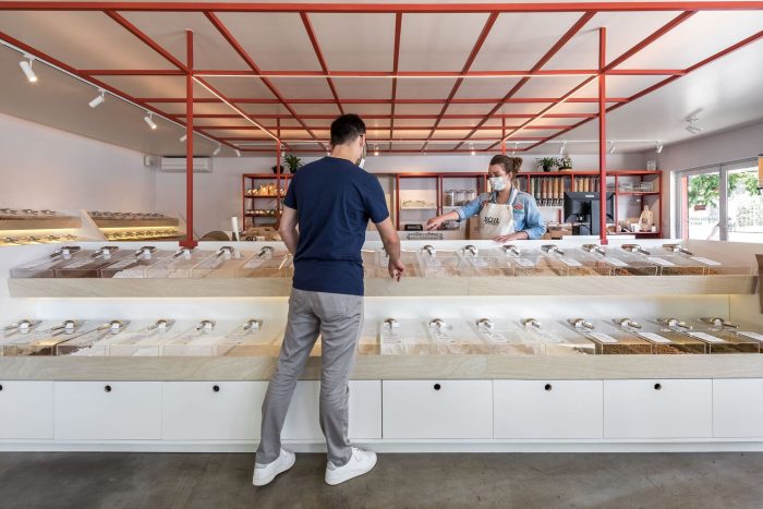 Nova Despensa是一个与客户一起构思了两年的项目。他们一来,我们就对这个提议非常感兴趣:一个与其他商店不同的散装店,基于更有意识的消费体验,对环境的影响更小,同时不牺牲产品的种类和质量。