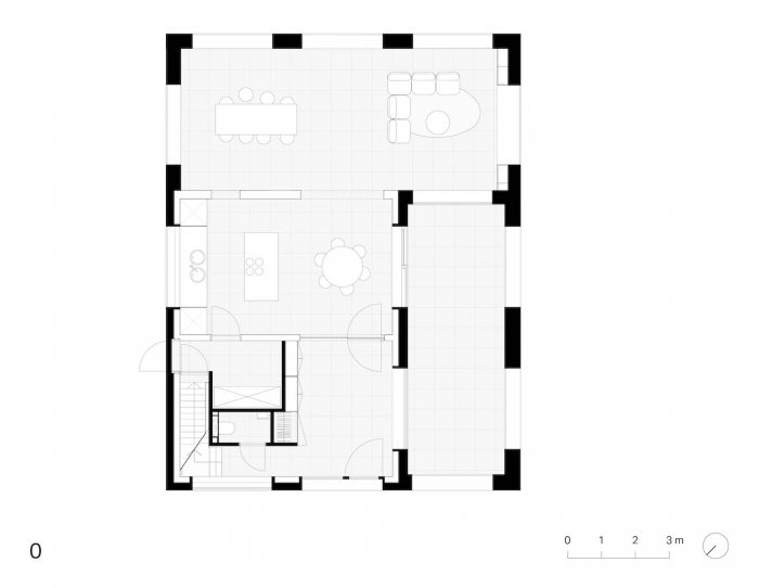 通过对现有墙体的涂白和用木头建造新的墙体,新的和现有的情况之间的对比以一种宁静的方式得到了强调。扩建部分实际上是现有房产的一个穹顶,位于大理石马赛克瓷砖的统一基座上。屋顶瓷砖和大理石瓷砖的统一,将新旧情况连成一片。