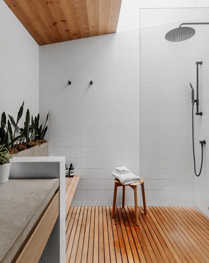 Elevated Design & Gradation. Central to Oakhill's design concept is the utilization of the site's gentle slope to subtly elevate interior spaces, providing an expansive view that avoids a sense of confinement within the forest. This elevated perspective harmoniously blends the home with its natural surroundings, creating a seamless transition from the controlled, sleek indoor environment to the organic outdoors. The thoughtful design approach invites occupants to experience a gradual progression from the refined interior spaces, through the intermediate outdoor living areas and, ultimately, into the lush embrace of the forest. This gradation underscores the home's unique connection to its environment, fostering a sense of unity with nature.