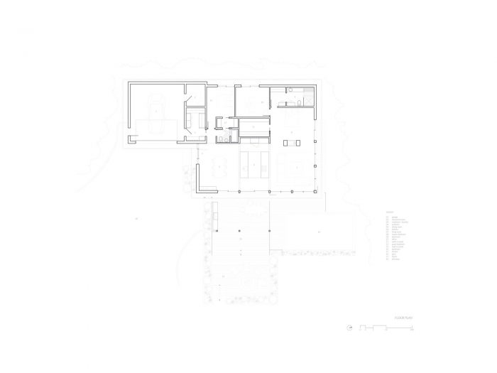 概念和内部空间。Oakhill强调一个适度的规模,是一个光滑的单层住宅,与森林树冠相协调,灵感来自于普遍的落叶树。根植于平缓的地形,轻质的屋顶被一个微妙而坚固的结构所支撑。交替的单坡屋顶提供了视觉趣味,同时也管理了阳光和遮阳。室内空间与自然环境流畅地融合在一起,消解了建筑与自然之间的界限。