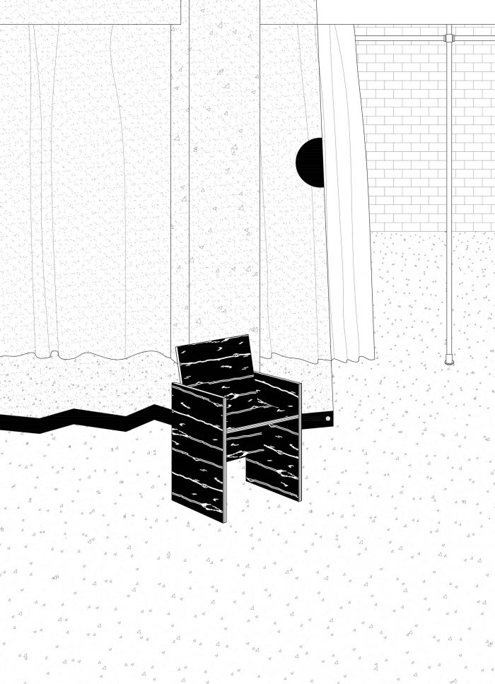 The design encourages the curtains to be moved around, creating different movement patterns and scenographic setups. Curtains can create extra spaces, form flexible walls, change the acoustics and the entire atmosphere. Therefore, an otherness is introduced, by the generous amount of material, scale, and space, and there is no fear of transforming the space since the intention is that every exhibition could adapt and transform the space to its needs.