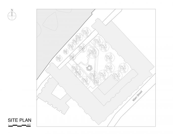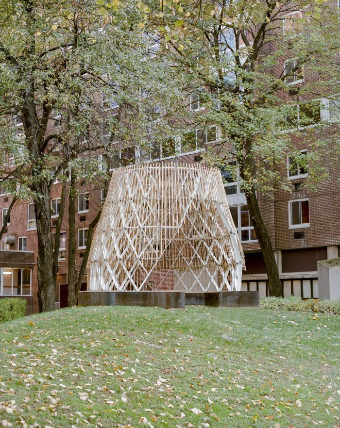 Located on Roosevelt Island, in the middle of the East River in New York City, the project sits in the courtyard of the Westview Coop building designed by Jose Luis Sert.