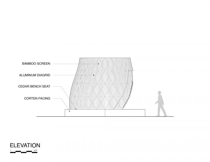 The Oca, a traditional Brazilian indigenous one-room multi-use structure, inspired the design. By using highly textured materials like Corten, Cedar and Bamboo our goal was to create an architecture that favored the sense of touch over the visual.