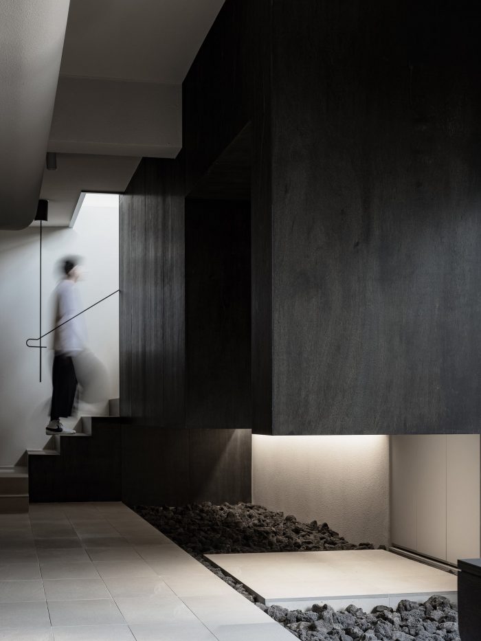 由于该项目位于釜山机张的海岸边,所有三座建筑都面向海岸线。这丰富了空间体验,让人在浏览空间时看到无尽的海洋画框。与城市环境不同,项目的郊区方面,特别是被自然环境所包围,导致设计团队创造了最小和简单的空间。在空间保持平静和安宁的同时,自然环境更接近客户。