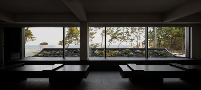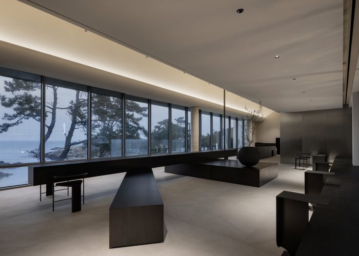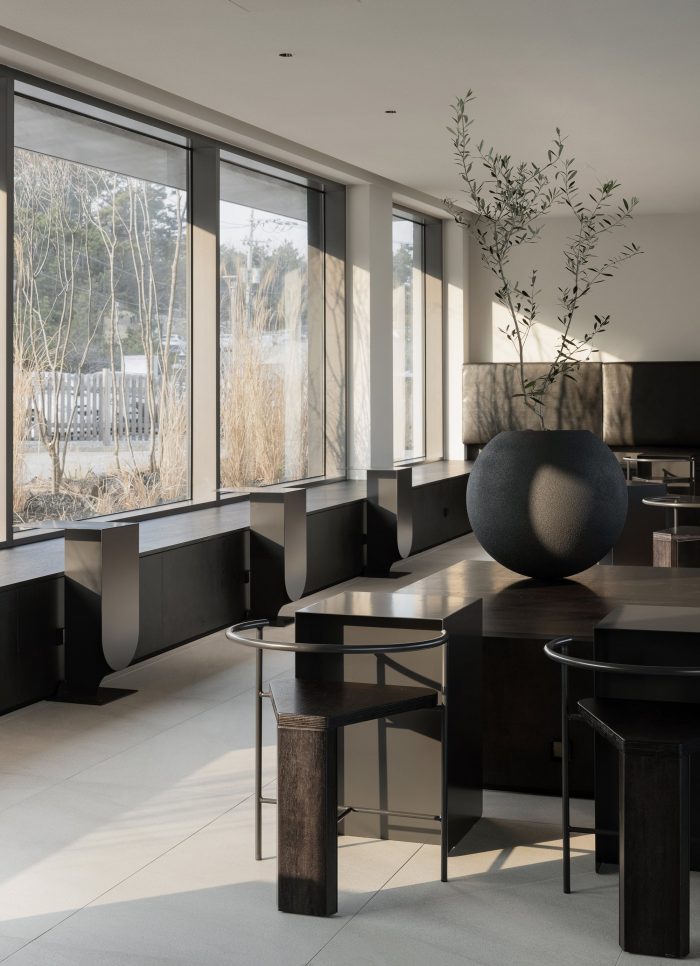 As the project is located on the shore of Gijang, Busan, all three buildings are oriented towards the shoreline. This enriches the spatial experience with an endless picture frame of the ocean while navigating the space. Unlike urban surroundings, the suburban aspect of the project, especially being surrounded by a natural environment, leads the design team to create minimal and simple space. While the space remains calm and serene, the natural surroundings come closer to the customers.