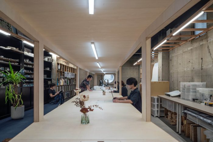 When we are in the office, we spend most of our time in front of our desks. We spend most of our time at our desks, doing everything from drawing, meeting, eating, and taking breaks. For us, a desk is like a "desk" for individual use, a "table" for many people, and a "room" in itself. I created an office with a desk that can be anything.
