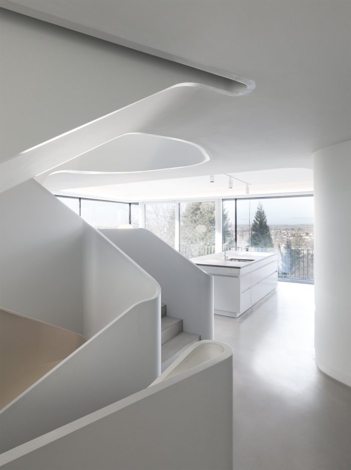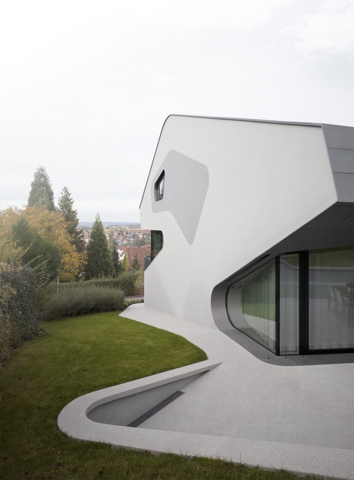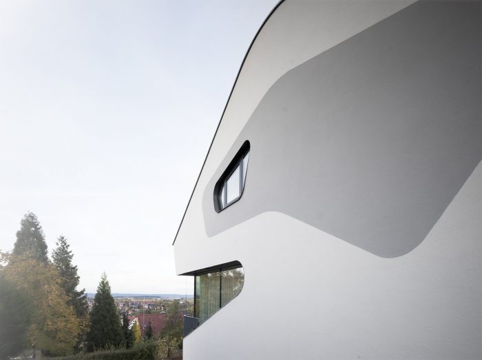 The new house is on a plot of land near Stuttgart, on a hillside with a generous view of the valley. The owners wanted a new home that would bring this view to life even inside of the building. The house is in a residential area with conventional developments, most of which date from the 1960s.