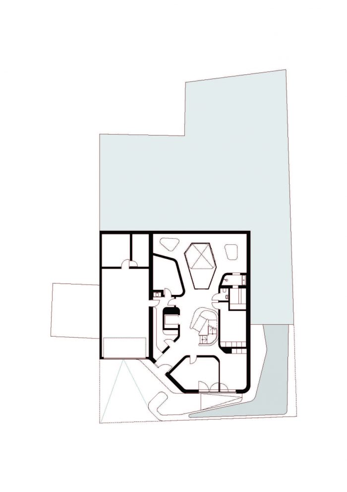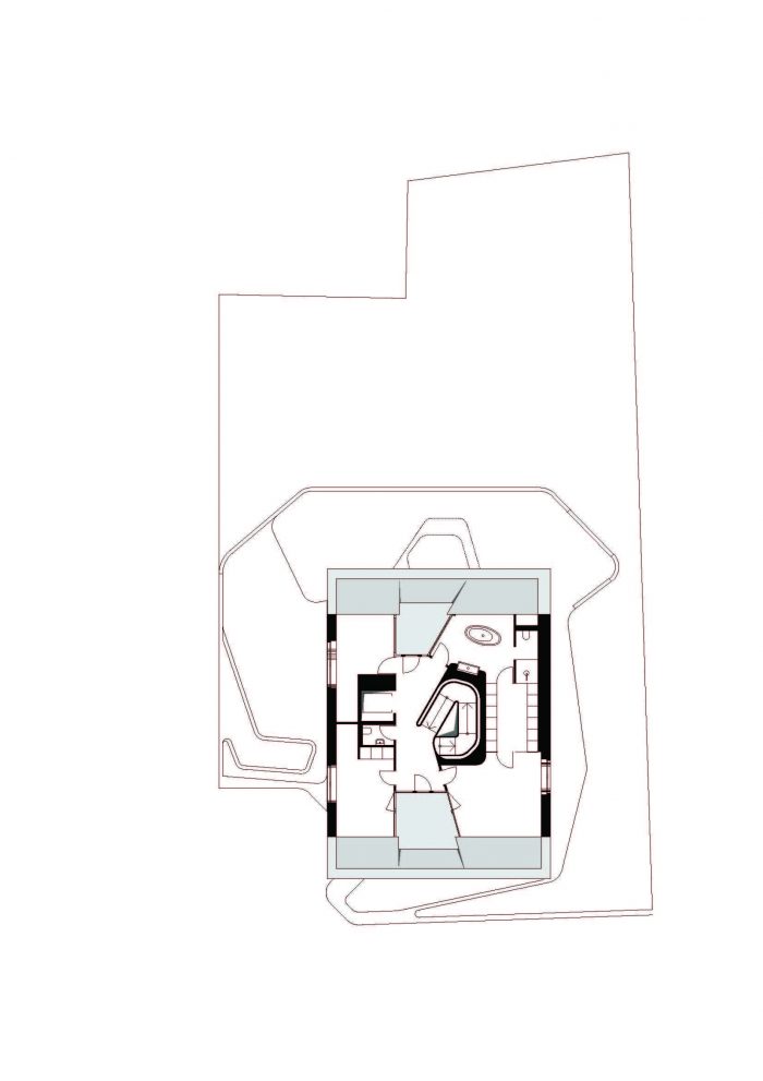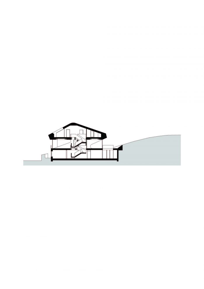 新的4人家庭住宅被分为一个带入口区、杂物间和温泉的高架底层,以及一个包含客厅、餐厅和厨房区域的开放、流动的平面图的二层。全高的玻璃窗提供了山谷和露台的自由视野,可以俯瞰花园区。楼上是睡眠区、更衣室和浴室。中心设计元素是一个雕塑般的楼梯,连接所有三个楼层。