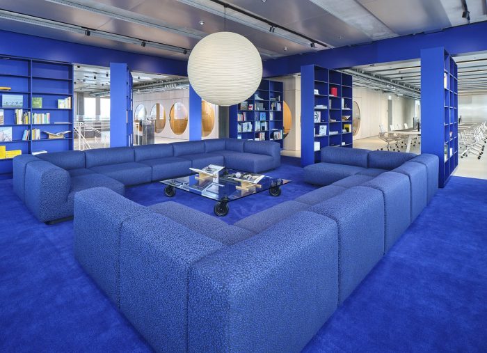 可移动的墙体被应用于整个办公室,以提供灵活多变的空间,一切都可以发生。其中一个例子是图书馆,可旋转的书架也作为房间的分隔物,创造了一个软性的会议室,人们也可以在那里了解更多关于公司和在那里工作的人的兴趣。在设计部,宽敞的双层天花板高度通过在空间内建造微型建筑作品得到了利用。这个诞生新想法的区域使用扩散的彩色玻璃与办公室的其他部分隔离开来;这是一个限制进入的区域。