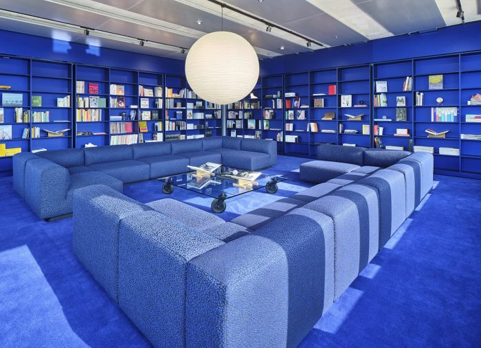 Movable walls have been applied throughout the offices to provide flexible and fluid spaces where everything can happen. One example is the library where the pivoting book shelves also act as room dividers, creating a soft meeting room where people also can learn more about the company and the interests of those who work there. At the design department the generous double ceiling height is utilized by constructing micro architecture pieces within the space. This area where new ideas are born is secluded from the rest of the office using diffused colored glass; this is a limited access zone.