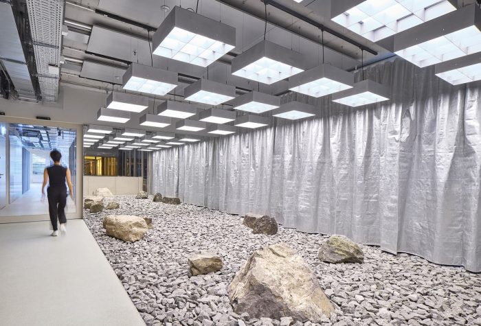 Nature, technology and human spirit has been the mantra while working with this 15 000 sqm space. As a result, elements that promote movement and interaction among employees are incorporated, such as a mountain trail-inspired path that runs through the 17 stories complex, height-adjustable tables in 95% of the meeting rooms, an in-house gym, and water stations to encourage hydration.