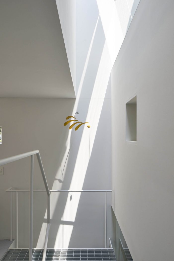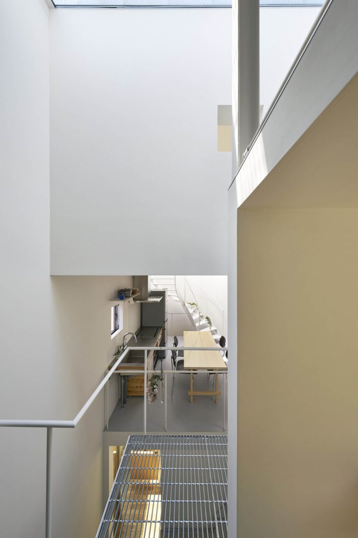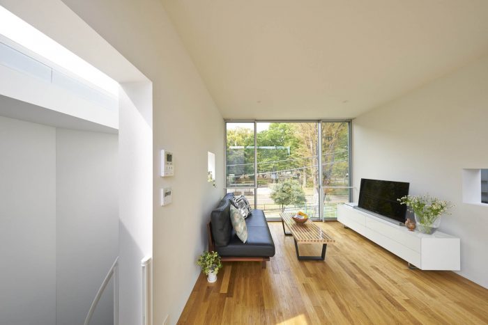 As a result, the house consists of two parts. One is “horizontal tube” penetrating from park side to the other side. The part is open to the public. The other is the rest of the volume, just like an ants’ nest, which is, in contrast, totally private space living with skylights.