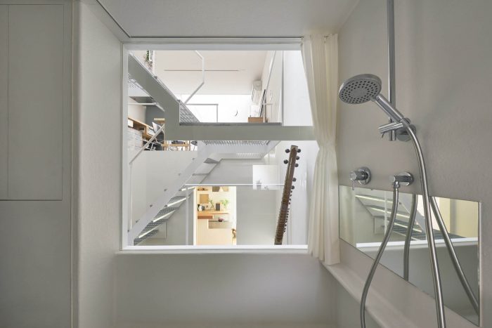 A couple, occupants of the house, had just a few requests. They want to have a café and to maximize the potential of the plot. Now they enjoy moving up and down between the two parts depending on their feeling etc. Rooms and functions are not one-to-one correspondence in the house.
