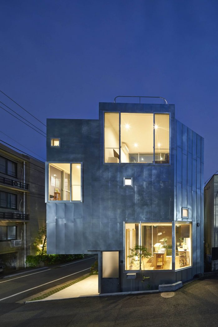 “ondo” is a house with a cafe, having 3 floors, a basement and a roof terrace. On the north side of the plot, the house faces one of the most famous parks in Tokyo. Since the plot is only 38 square meters, it was very important to pay attention to characteristic of the plot which dramatically changes with its vertical level.