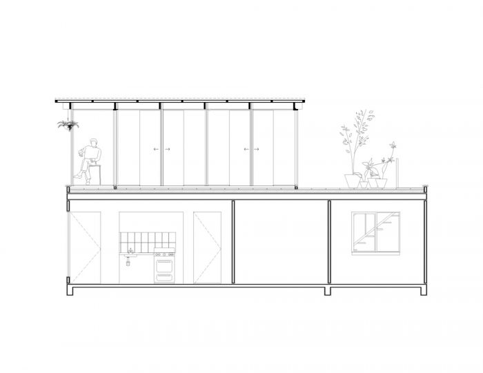 这是一个房屋扩建原型,目的是在目前存在过度拥挤问题的社会房屋的屋顶上增加一个16平方米的房间,因为这些房屋原本只有一间卧室。