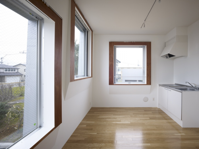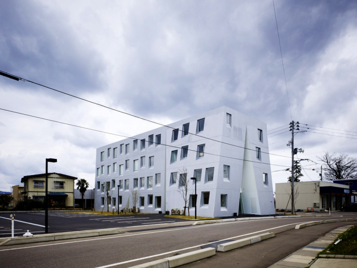When the normal cubic volume diverges, a space will be formed in between and people feel welcomed by the warm and large space. The unique branched shape from the outside will symbolize as a comfortable place in a contemporary way.