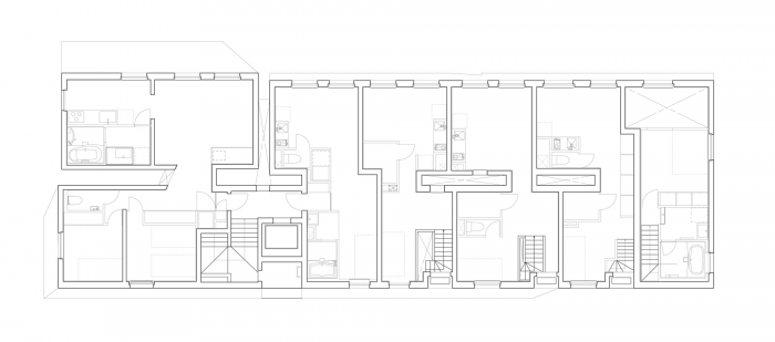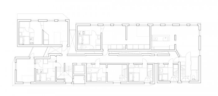 Since there is a lot of snow in winter, terraces are not suitable. We wanted to create a huge roof for the house volumes, which can cover the common space protected from the cold weather.