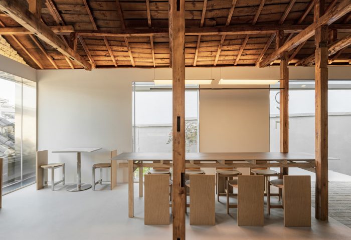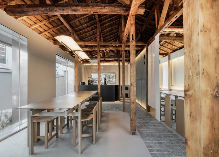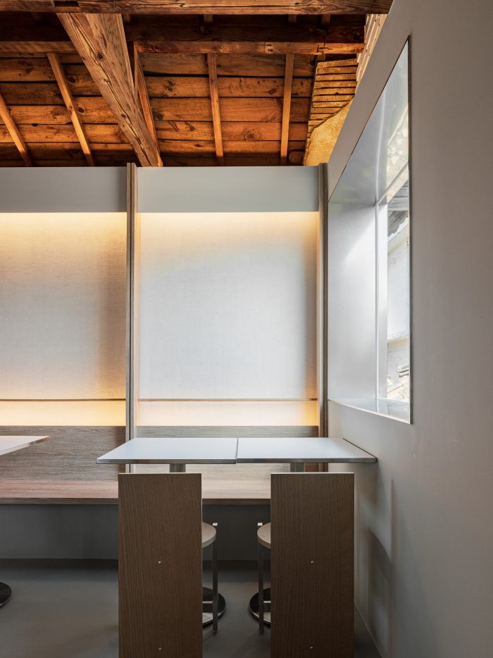 这个结构是用木头做的,所以我们尽量利用现有的结构来留下过去的痕迹,我们抓住顾客在留下的木柱周围的动作。此外,通过利用这些木柱,各种连接方法,如内置长椅和浮动组台的边界等,都是使用的信息。
