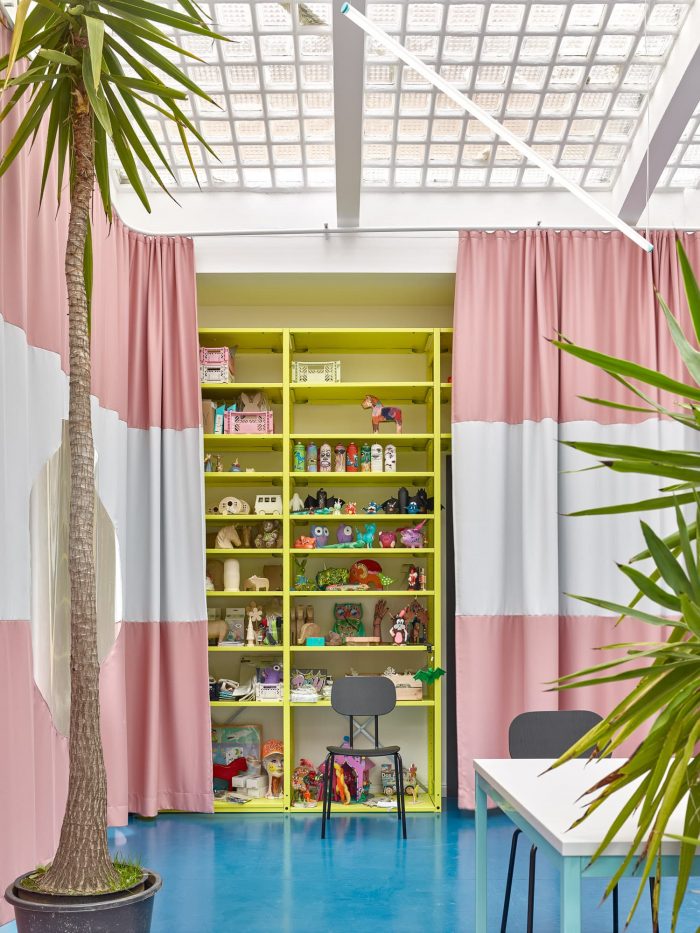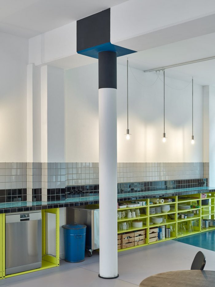 The space would simultaneously be used for handicraft courses, start-up seminars, parties, and co-working and would also include a cafe. Thus, the space was meant to be used as flexibly as possible, to be dividable, to offer a lot of storage space, and to be easily accessible to a wide range of users.