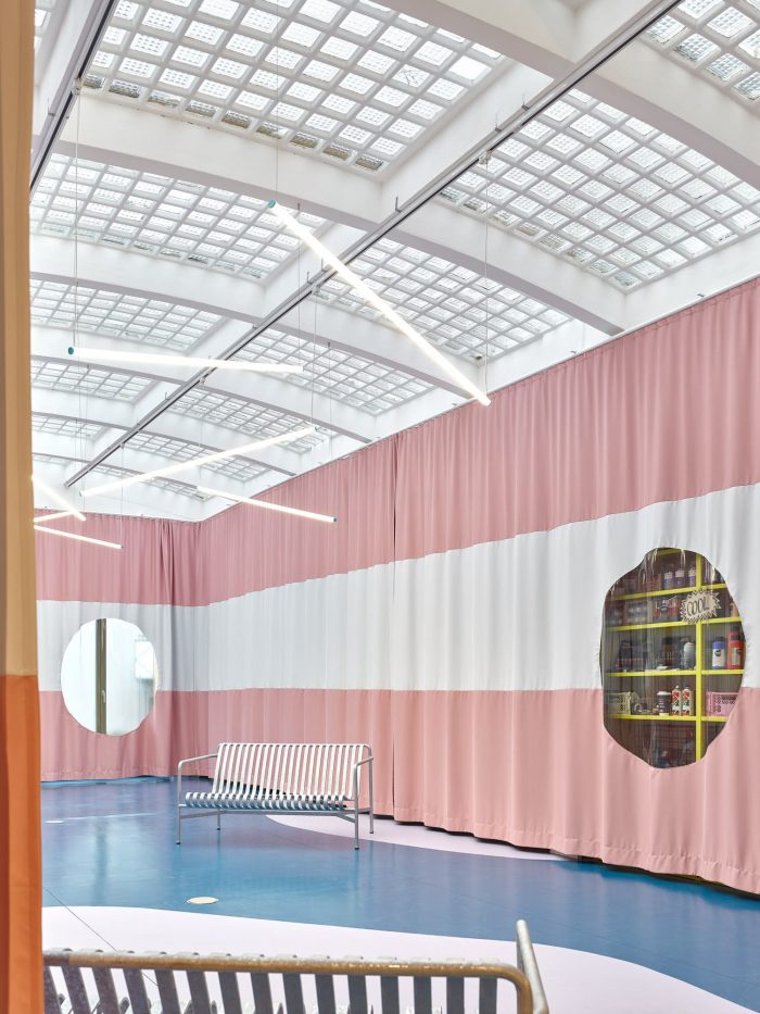 Our goal was to give this special place in the city, which was intended to bring together and connect the residents, with an expressive and joyful character. At the same time, we could not interfere with the existing building and tried to bring out and emphasize the inherent qualities of the structure.