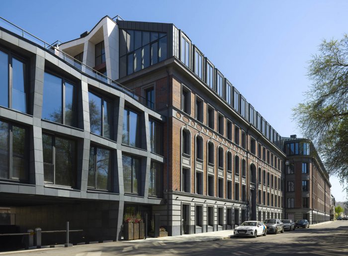 London-based AI Studio completes ORDYNKA, a high-end residential project in Central Moscow. ORDYNKA project occupies the site of a famous chocolate factory in the historic heart of Moscow. It consists of seven high-end residential buildings connected by a spacious internal courtyard. The original facades of the factory were renovated to retain their historical appearance.