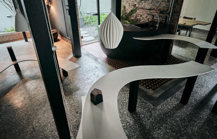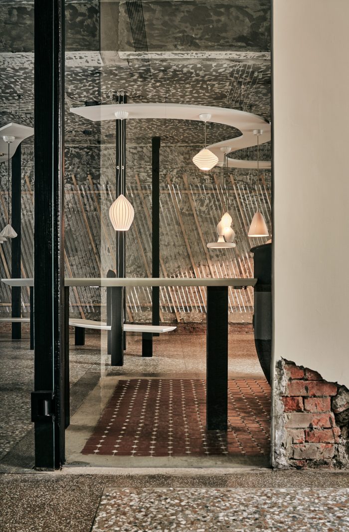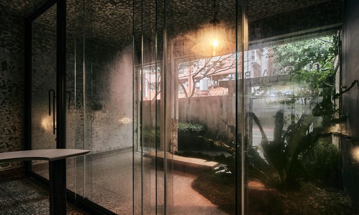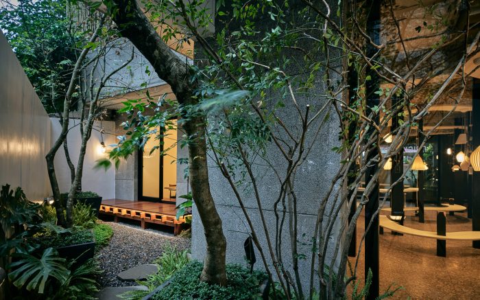 位于中山捷运站附近的一条安静的小巷里,占据了一栋老式4层复式公寓的第一层,该场地捕捉到了怀旧的台北的典型景观。就在场地的对面,有一座名为 "有求必应 "的传统寺庙,进一步丰富了台湾的当地场景和风格。在过去的四十年里,这所房子一直作为一个普通的办公室。我们把小厨房打开,变成了画廊空间的一部分,而原来的红色压花地砖仍然显示出老房子的痕迹。后院曾经是一个扩展的仓库,被改造成一个户外花园。此外,入口处的墙被推后,形成了一个进出 "之间 "的内部庭院,引入了前院的景色,模糊了旧有的空间界限,带来了一种阴谋的感觉。