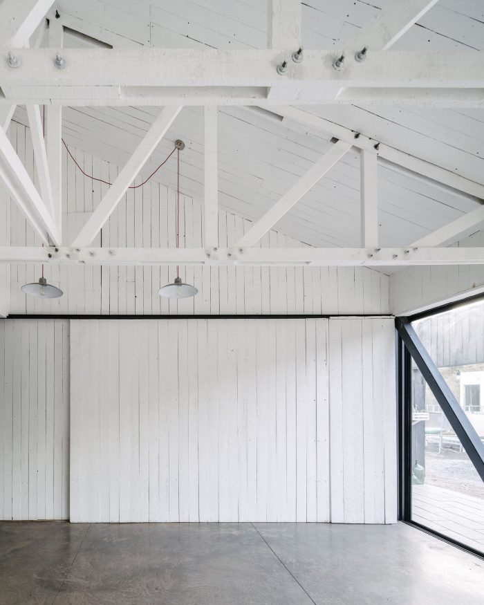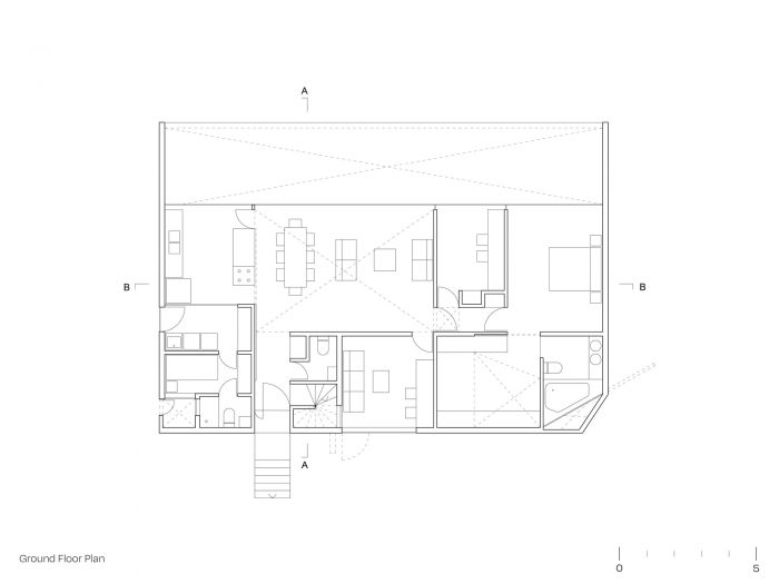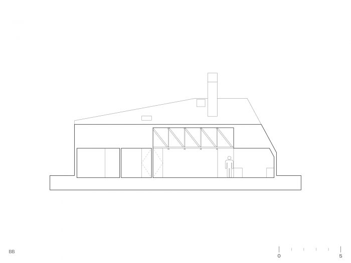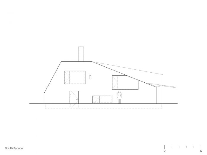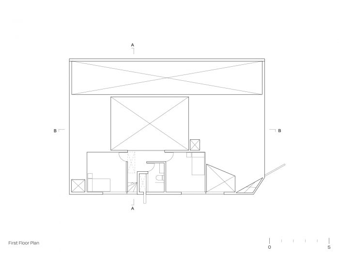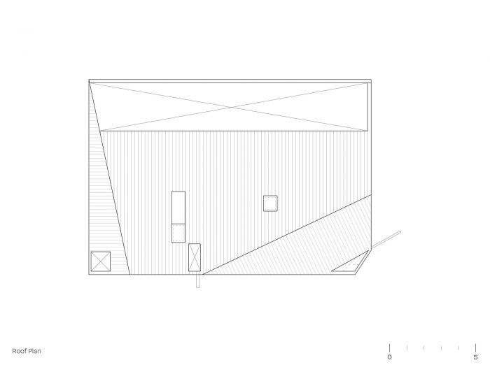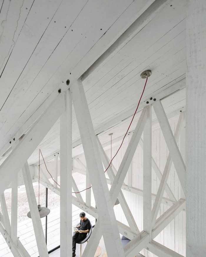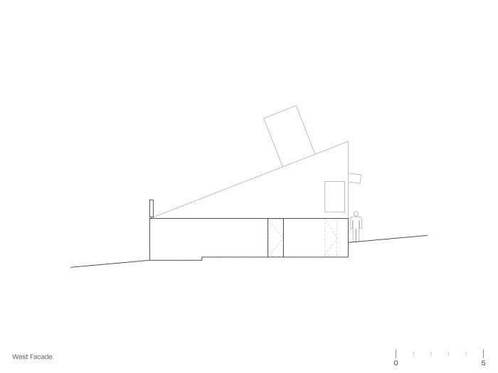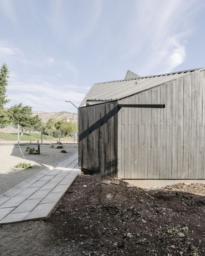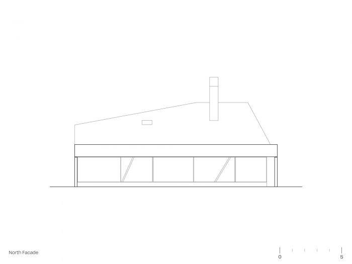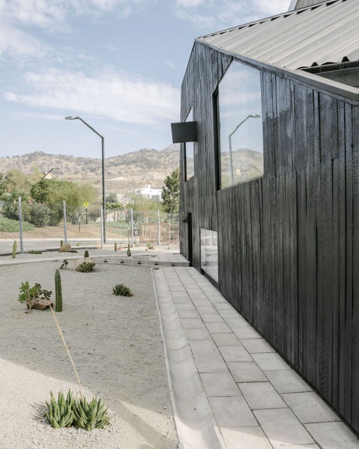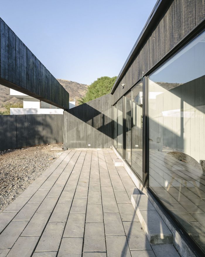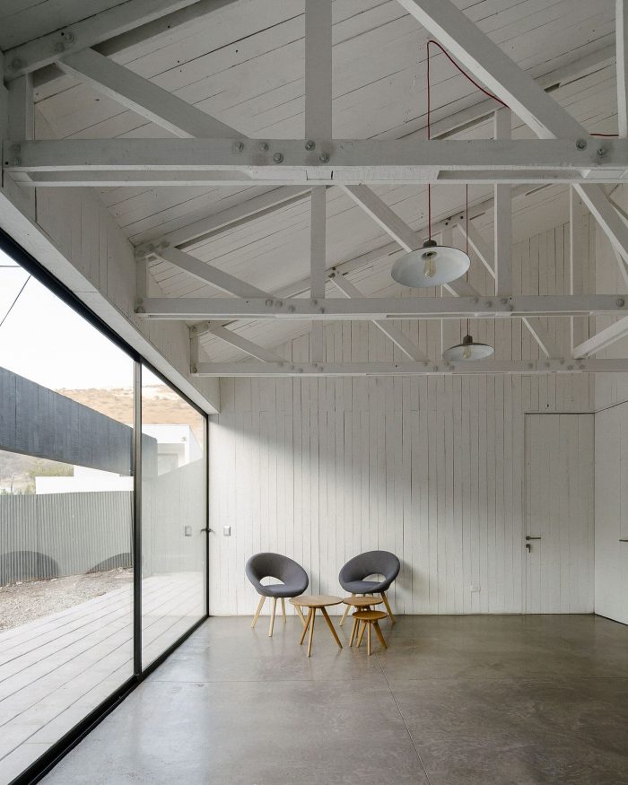 On uneven terrain, the envelope is buried towards the street and opens towards the north, consolidating a common ground that allows diluting the limits between the interior of the house and the outdoor terrace in front of which all the common spaces are located. This envelope, which makes up the entire house, is stripped of all material pretensions and is shown in its most primitive form: built entirely of raw wood and resting on a pure concrete floor.