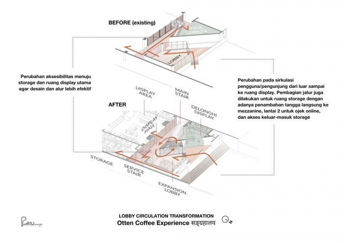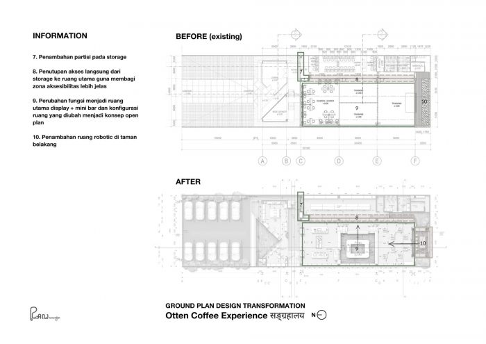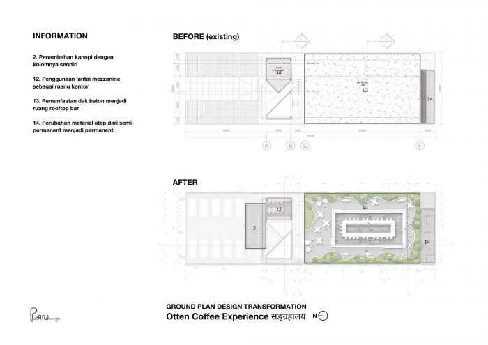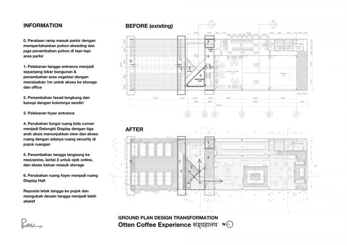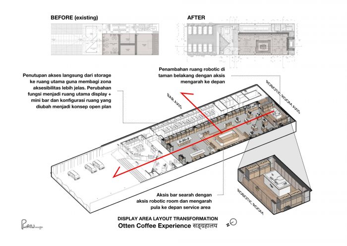 Located at Kaliki, Bandung, Otten Coffee Experience is a renovation project of two storeys building with a total of 600 sqm building area where the old structure is preserved. Spaces are redefined and optimized to give a better experience for guests.
