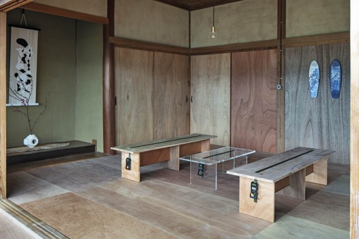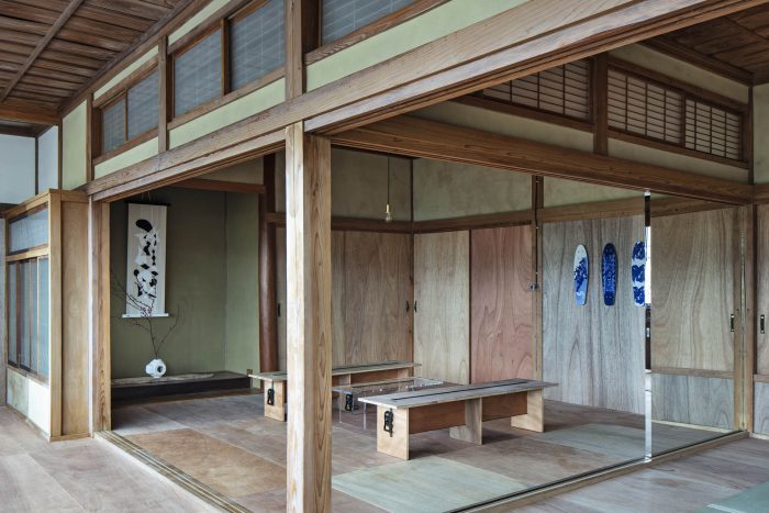 On the second floor, tatami mats were replaced with wooden boards to create a residence space for artists. The wall below the nageshi (decorative material that connects columns horizontally) is covered with the same lauan plywood as the floor, and no additional work has been done above that. By slightly changing its relationship, the original meaning can be altered. We believe that this is an effective way to utilize existing stock, such as vacant houses. After completion, plans to use it not only as an office, but also as a tea shop adjacent to the park, a pop-up store, and a rental space have immediately surfaced.