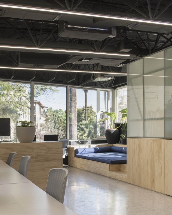 In late August of 2020, in the midst of the global pandemic, just as the city of Santiago was coming out of a 4-month-long lockdown, we were commissioned—through a brief private competition—to design the headquarters of Fintual at the Droguett Palace, which they had just leased. The brief was straightforward. The project would be developed in stages, with the first one being the main office floor located on the building’s second level. Needing to accommodate 40 to 60 employees at all times, the project was to provide multiple ways of working, from conventional desk work to hot desking, private and group conference calls, as well as more laid-back living room and coffee shop type situations. It had to be a fun space to work in and it should reflect the horizontal culture of the company. And they wanted plants. Lots of them.