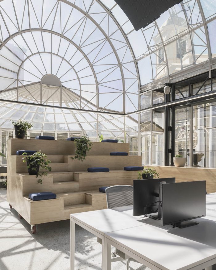 不过,有一个注意事项。他们需要快速行动。第一阶段的总体方案是在10天内制定的--在竞争阶段--主要集中在以前的室外露台上,现在用玻璃桶拱顶覆盖,或Fintual称之为 "凉棚",因为宫殿的内部需要较少的干预,更多的是家具,因为它已经具有极好的空间质量。