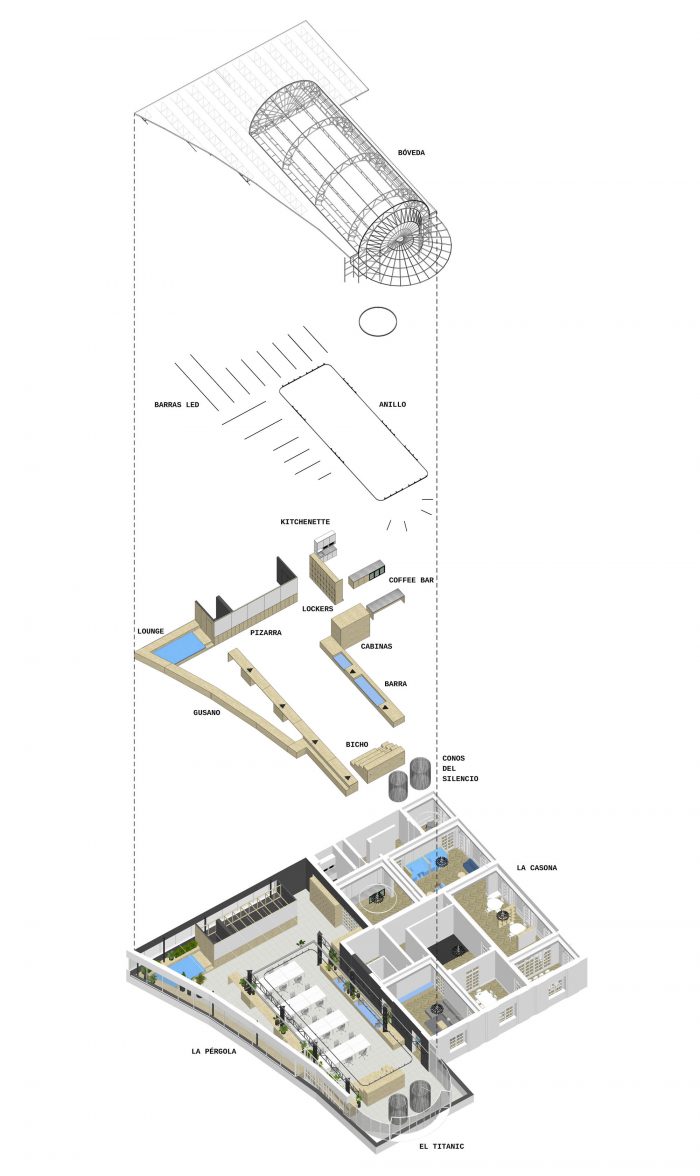 There was one caveat, though. They needed to move in fast. The general scheme for this first stage was developed in 10 days—during the competition phase—and concentrated primarily on the former outdoor terrace now covered with the barrel vault of glass, or “pergola” as Fintual calls it since the interior of the palace needed less of intervention and more of furnishing because of its already superb spatial qualities.