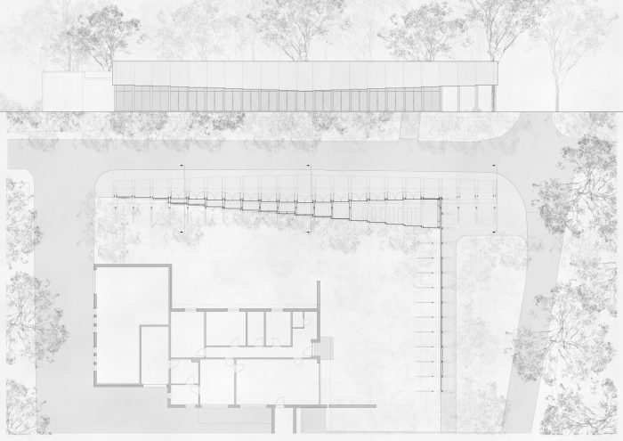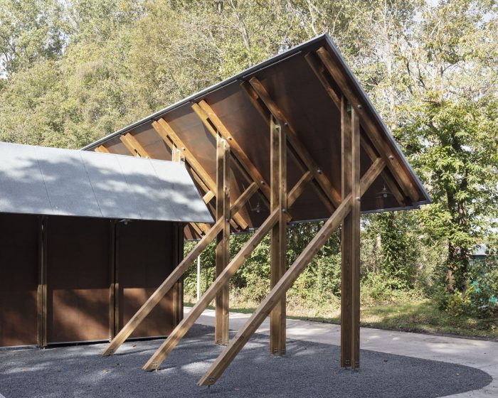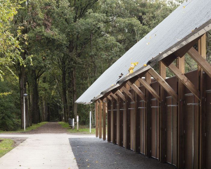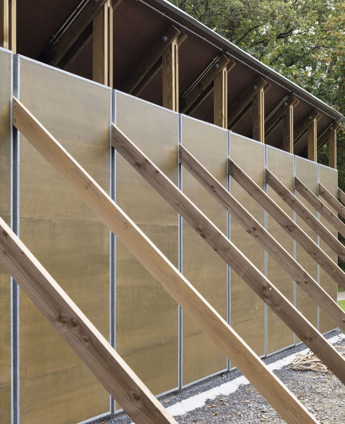 Being an element of visual guidance, a part of the walkway structure, and also a place in itself with its own logic, this structure is able to receive and generate its own identity. Hence it is more than an extension of the existing pavilion as it defines the space beyond its direct surroundings.